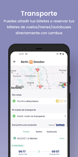 Con nuestra función de transporte, no sólo puedes planificar rutas entre paradas, sino también depositar o reservar fácilmente tu transporte. Una vez que reserves tus billetes, ¡se añadirán automáticamente a tus documentos de viaje!